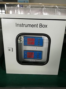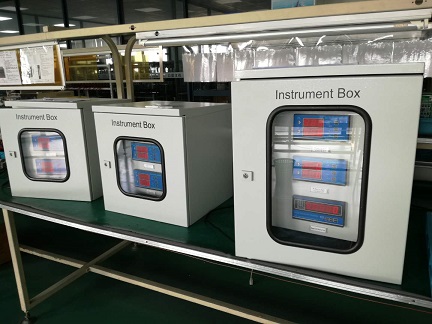 下午去生產(chǎn)車間,看到工位上有3個(gè)儀表箱已經(jīng)安裝完成,正在通電中,其中2個(gè)裝2臺儀表的儀表箱,1個(gè)裝3臺儀表的儀表箱。儀表箱中安裝的是CZJ-B3振動(dòng)烈度監(jiān)視儀和SZC-04B智能轉(zhuǎn)速表,旁邊還有配套的測振動(dòng)的SZ-6磁電式速度傳感器和測轉(zhuǎn)速的SZCB-01磁阻轉(zhuǎn)速傳感器??吹焦裆厦娴挠⑽淖址蛢x表是英文面板,我就知道這是要出口國外的產(chǎn)品。