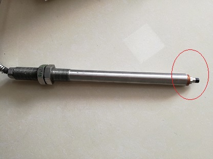 我收到測(cè)桿時(shí),看到測(cè)桿和DWQZ電渦流傳感器探頭連接的部位,中間墊了兩個(gè)厚的銅墊圈。正常情況下是探頭和測(cè)桿通過(guò)螺紋直接連接,無(wú)需加任何零部件。我們判斷下來(lái),這兩個(gè)銅墊圈應(yīng)該是客戶在現(xiàn)場(chǎng)安裝的時(shí)候自己加上去的,原因是當(dāng)初定做的測(cè)桿長(zhǎng)度還是稍稍短了一那么點(diǎn)點(diǎn),達(dá)不到安裝測(cè)量要求,而進(jìn)行的加長(zhǎng)補(bǔ)救措施,這是一個(gè)比較巧妙且經(jīng)濟(jì)的辦法,由于用了十幾年的產(chǎn)品,無(wú)法了解當(dāng)時(shí)的情況,總之為當(dāng)時(shí)聰明的安裝人員點(diǎn)個(gè)贊。也正好短的長(zhǎng)度尺寸比較小,要是探頭螺紋的可調(diào)節(jié)尺寸不夠,就不是墊圈能解決的,必須要重新加工探頭測(cè)桿了。