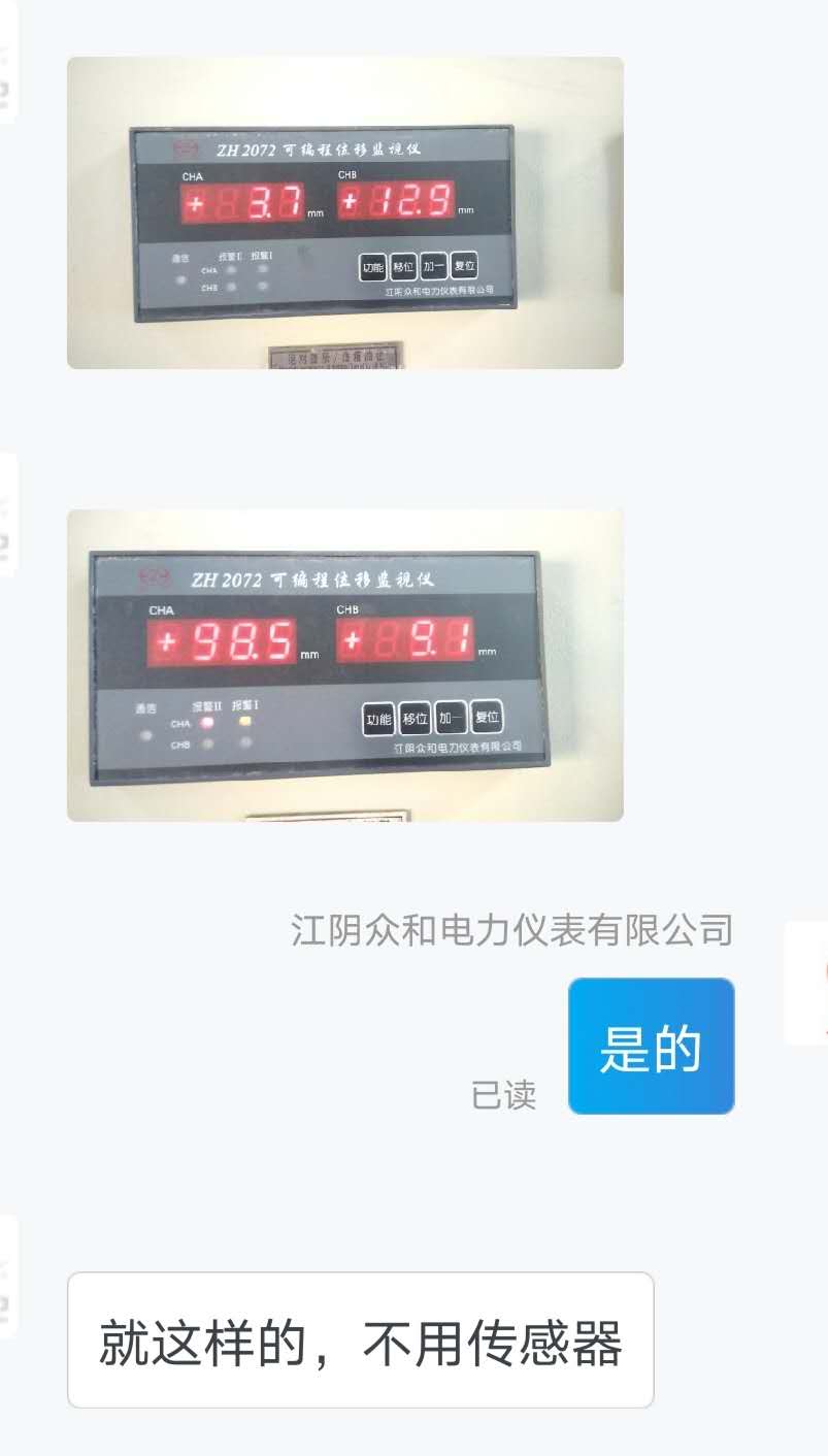 跟客戶(hù)解釋后,我給客戶(hù)報(bào)價(jià),并讓他確認(rèn),等他的回復(fù)。過(guò)了幾天,客戶(hù)聯(lián)系我,和用戶(hù)確認(rèn)過(guò)了,只要儀表,并把拍到的現(xiàn)場(chǎng)的照片發(fā)給我。隨后客戶(hù)就和我談合同的事情, ZH2072可編程位移監(jiān)視儀一般都有現(xiàn)貨,我查了確實(shí)有庫(kù)存,款到就可安排出廠(chǎng)調(diào)試和發(fā)貨事宜。